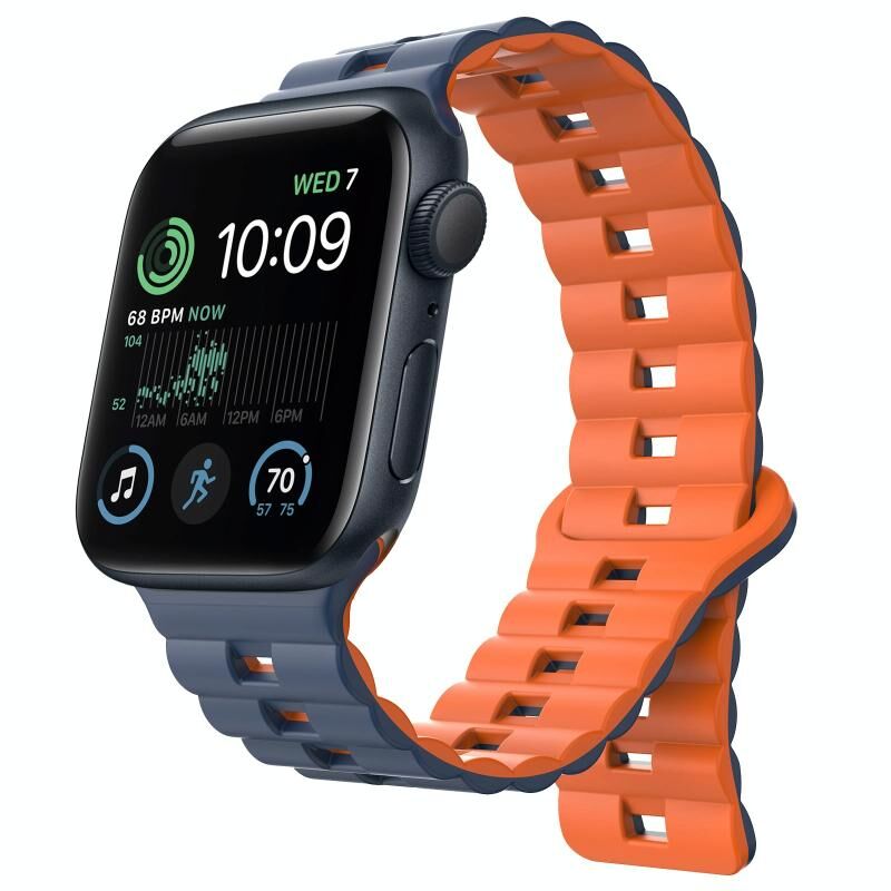 Για Apple Watch SE 44mm Μαγνητικό Δερμάτινο Λουράκι Σιλικόνης με Αντίστροφη Αγκράφα, Δύο Χρωμάτων (Γκρι+Πορτοκαλί)