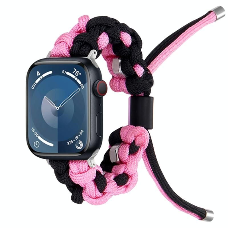 For Apple Watch SE 44mm Screw Nut Dual-Color Braided Paracord Watch Band(Black Pink)