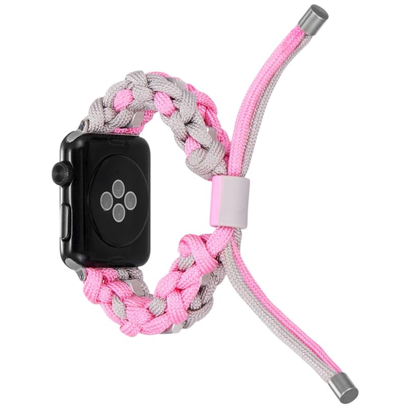 For Apple Watch SE 44mm Screw Nut Dual-Color Braided Paracord Watch Band(Silver Pink)