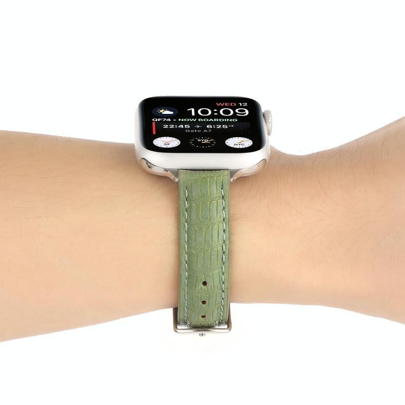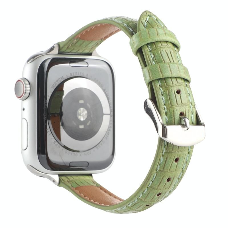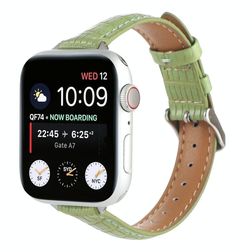 Για Apple Watch SE 44mm Λεπτό Δερμάτινο Λουρί Κροκόδειλου (Ροζ)