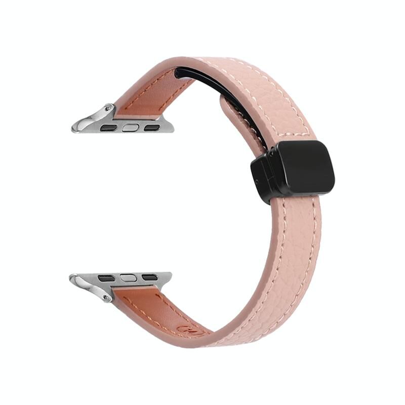 Για Apple Watch SE 44mm Λεπτή Μαγνητική Αγκράφα Αυθεντικό Δερμάτινο Λουρί (Απλό Μωβ)