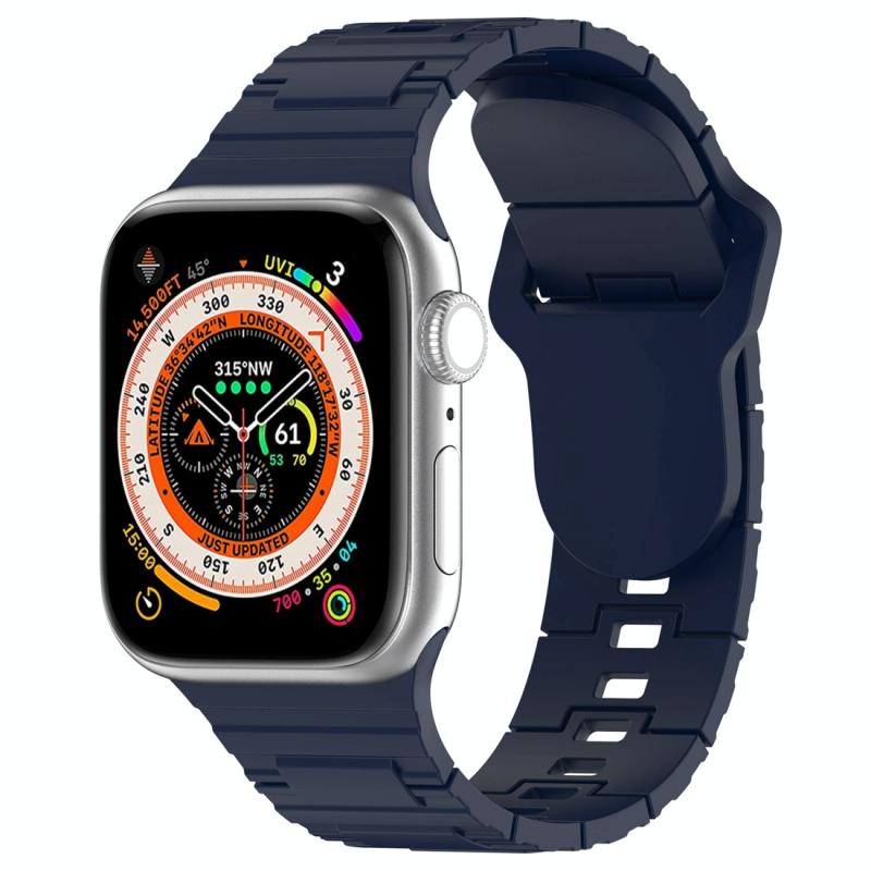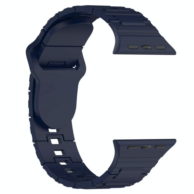 For Apple Watch SE 44mm Square Buckle Armor Style Silicone Watch Band(Midnight Blue)