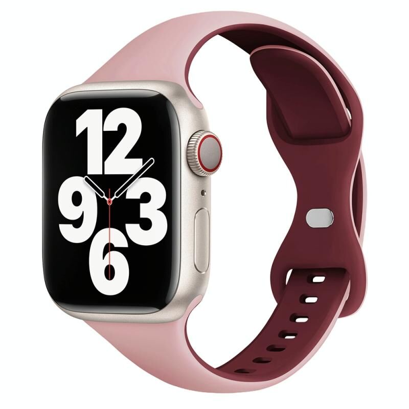 Για Apple Watch SE 44mm Δερμάτινο Λουράκι Σιλικόνης με Αγκράφα Πεταλούδας σε Δύο Χρώματα (Ροζ Κρασί)