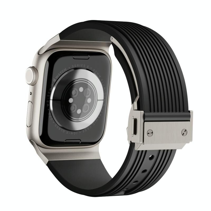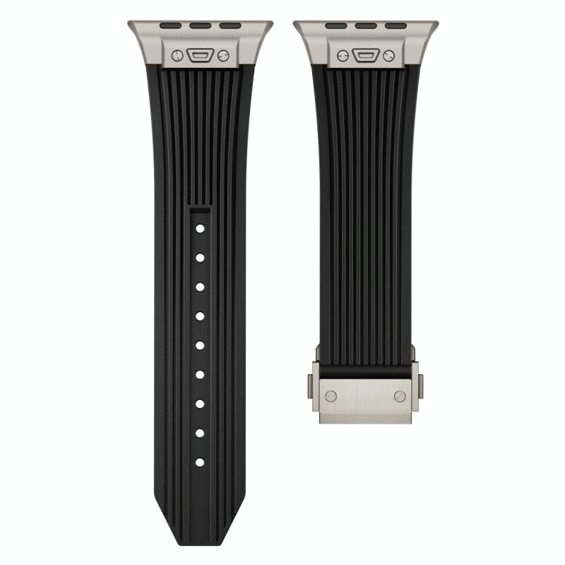 Για Apple Watch SE 44mm Ελαστικός ιμάντας ρολογιού από σιλικόνη με αγκράφα τιτανίου κάθετης υφής (Μαύρο)
