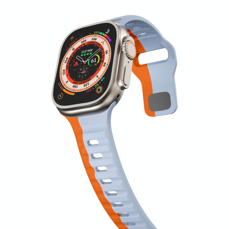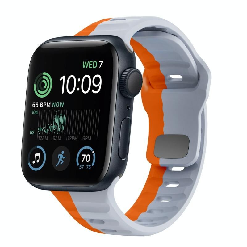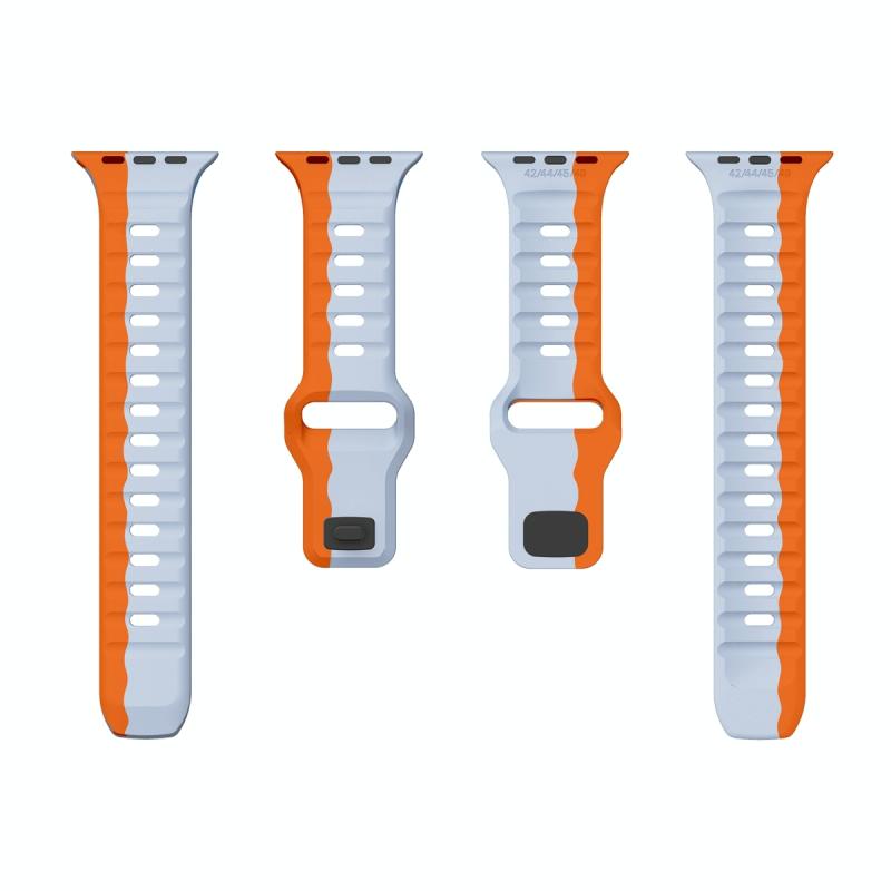Για Apple Watch SE 44mm Λουρί Σιλικόνης με Αγκράφα Ανάστροφης Υφής Κυμάτων (Πορτοκαλί-Μαύρο)