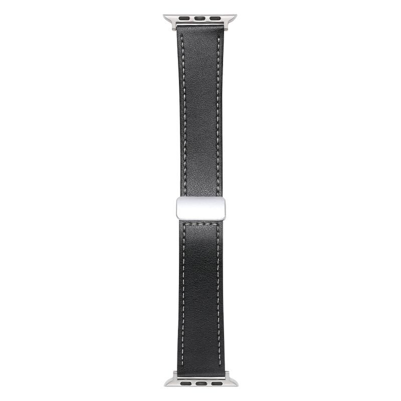 Για Apple Watch Series 4 44mm Μαγνητική Αγκράφα Δερμάτινο Λουράκι (Μαύρο)