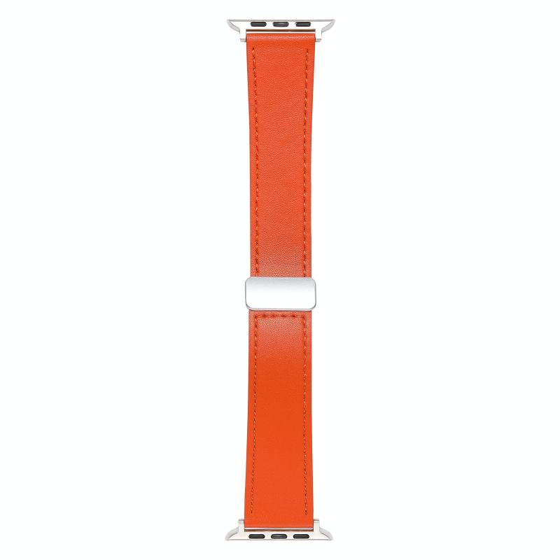 Για Apple Watch Series 7 45mm Μαγνητική Αγκράφα Δερμάτινο Λουράκι (Πορτοκαλί)