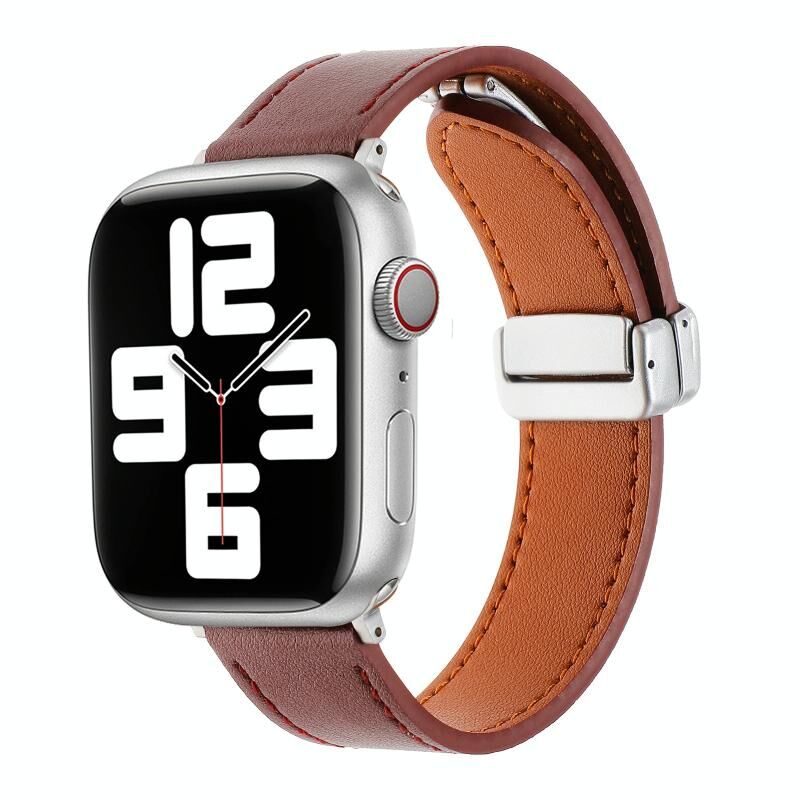 Για Apple Watch Series 7 45mm Μαγνητική Αγκράφα Δερμάτινο Λουράκι (Κρασοκόκκινο)