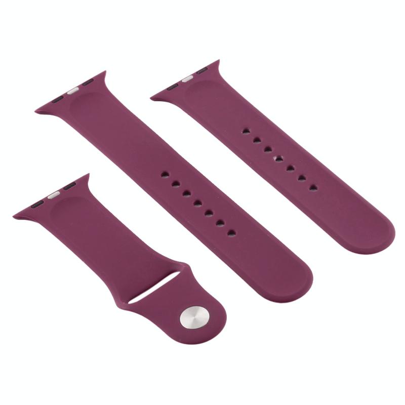 Για Apple Watch Series 10 42mm / 9&8&7 41mm / SE 3&SE 2&6&SE&5&4 40mm / 3&2&1 38mm 3 σε 1 Λουράκι Ρολογιού από Καουτσούκ με Αγκράφα Πείρου (Βιολετί)