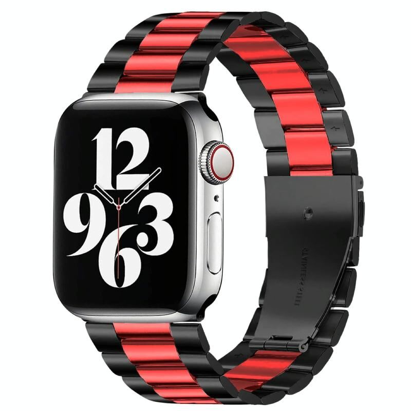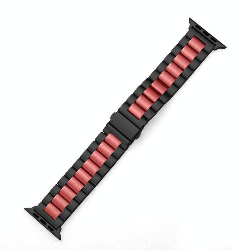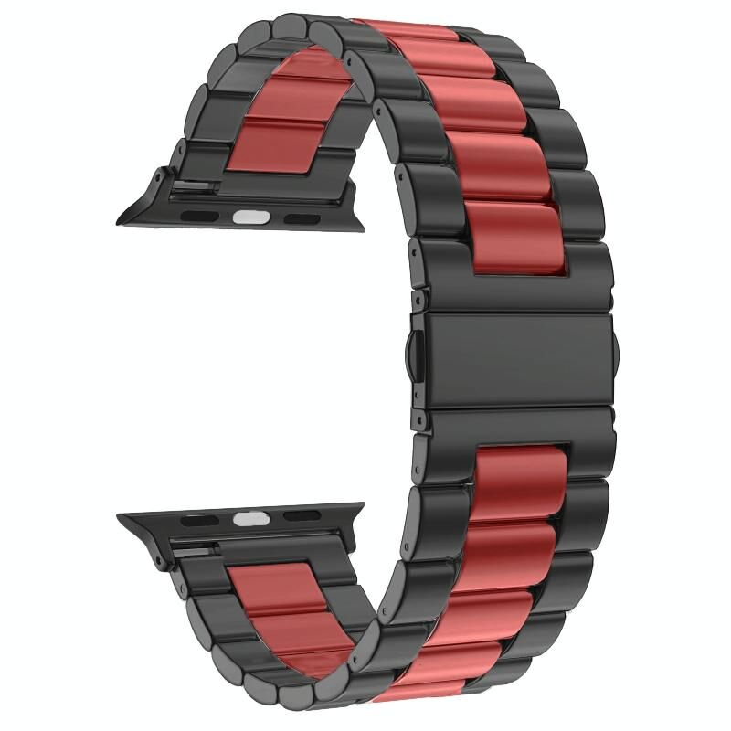 For Apple Watch Series 10 42mm / 9&8&7 41mm / SE 3&SE 2&6&SE&5&4 40mm / 3&2&1 38mm Fold Buckle 3 Beads Stainless Steel Watch Band (Black Red)