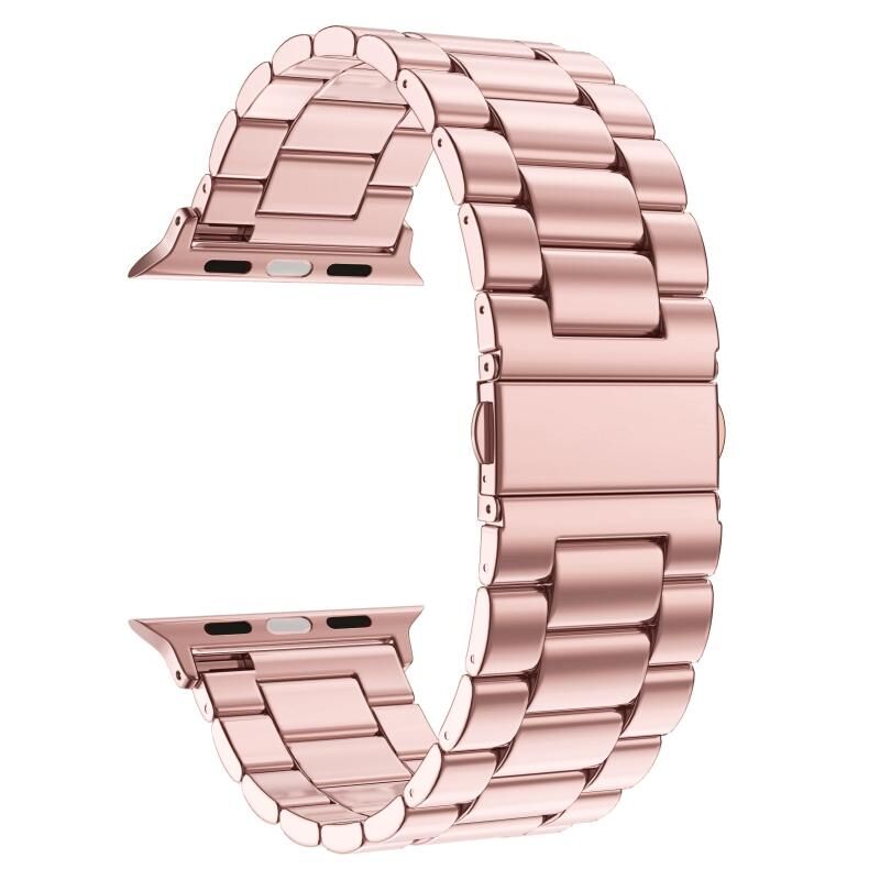 Για Apple Watch Series 10 42mm / 9&8&7 41mm / SE 3&SE 2&6&SE&5&4 40mm / 3&2&1 38mm Κούμπωμα Δίπλωσης 3 Χάντρες Λουρί Ρολογιού από Ανοξείδωτο Ατσάλι (Μαύρο Ροζ)