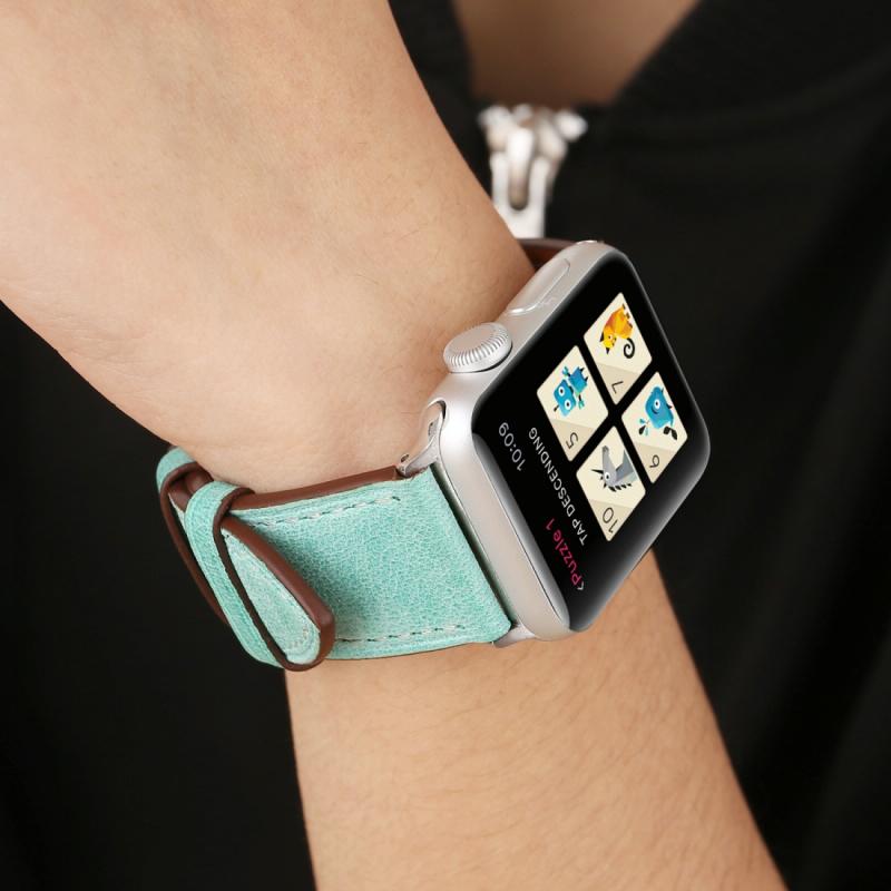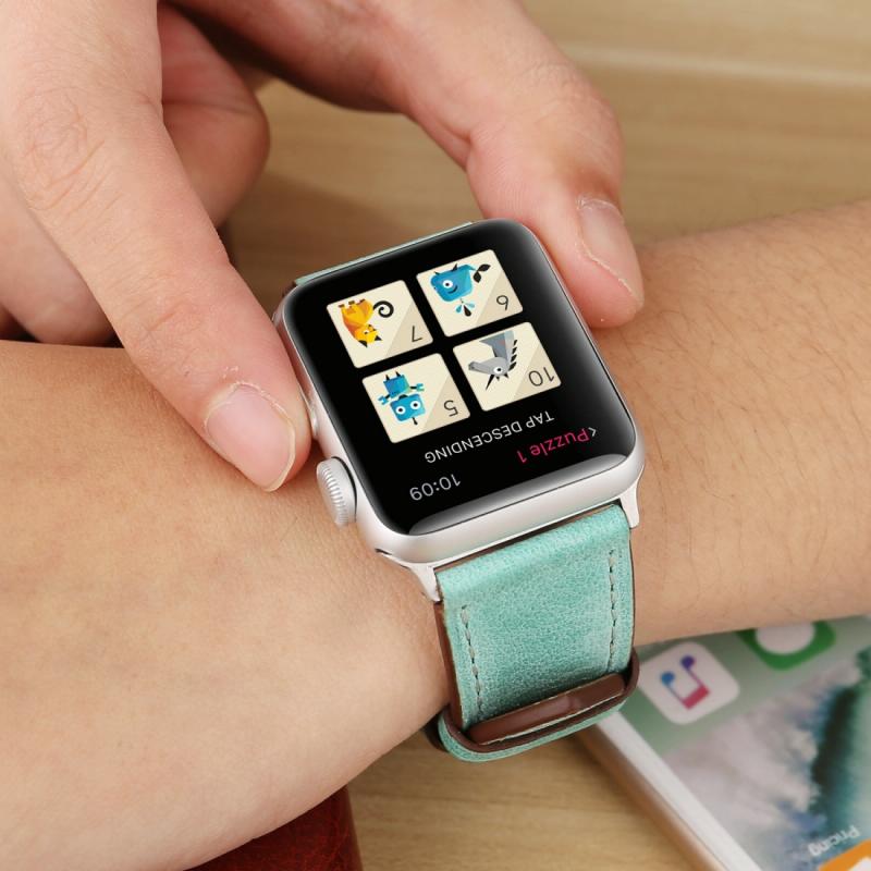 Λουρί ρολογιού από γνήσιο δέρμα για Apple Watch Series 10 42mm / 9&8&7 41mm / SE 3&SE 2&6&SE&5&4 40mm / 3&2&1 38mm (πράσινο)