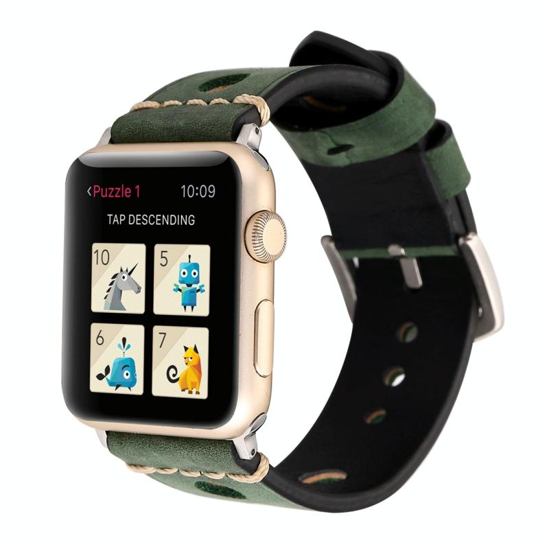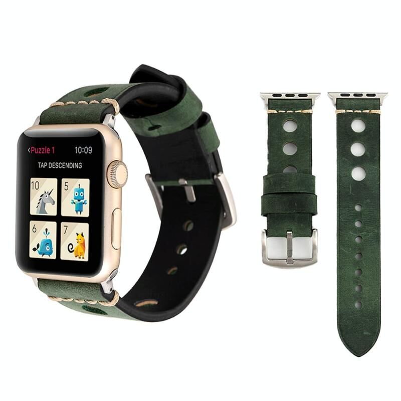 Για Apple Watch Series 10 42mm / 9&8&7 41mm / SE 3&SE 2&6&SE&5&4 40mm / 3&2&1 38mm Ρετρό Δερμάτινο Λουράκι Χειρός με Γνήσιο Δέρμα με Τρύπες (Καφέ)