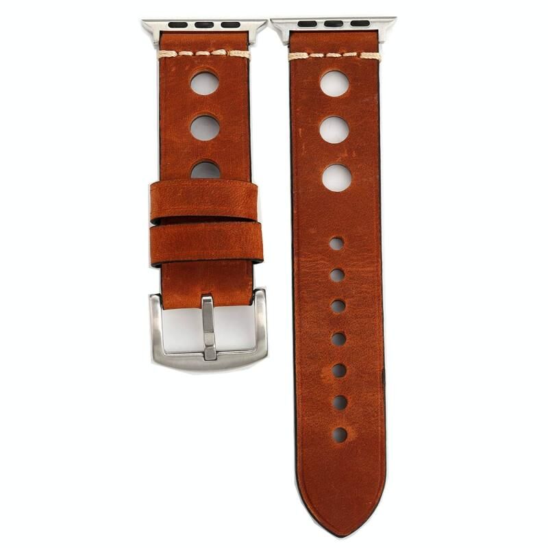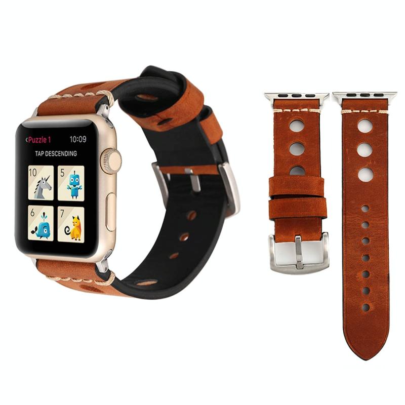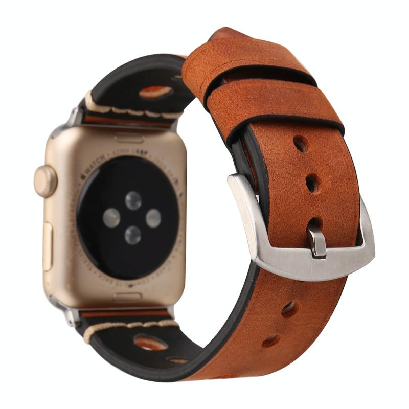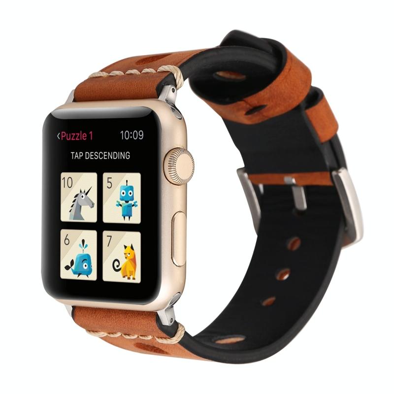 Για Apple Watch Series 10 42mm / 9&8&7 41mm / SE 3&SE 2&6&SE&5&4 40mm / 3&2&1 38mm Ρετρό Δερμάτινο Λουράκι Χειρός με Γνήσιο Δέρμα με Τρύπες (Καφέ)