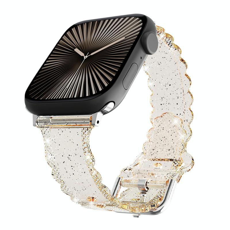 Για Apple Watch Series 10 42mm Διαφανές Λουρί TPU με υφή διαμαντιού και σχέδιο δαντέλας (Μαύρο)