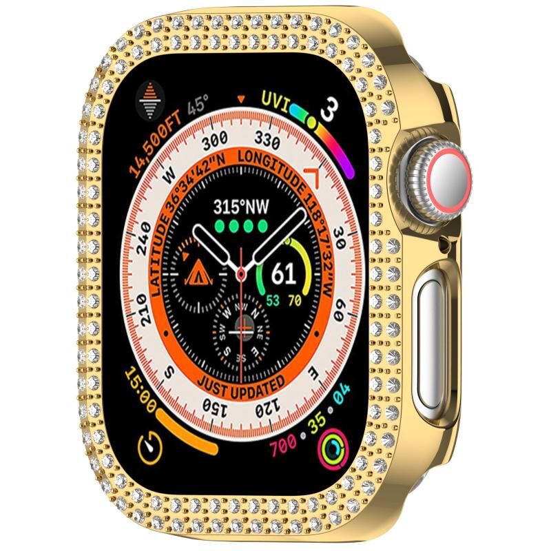 For Apple Watch Series 10 42mm Dual-Row Diamond Plating PC Hollow Watch Case(Gold)