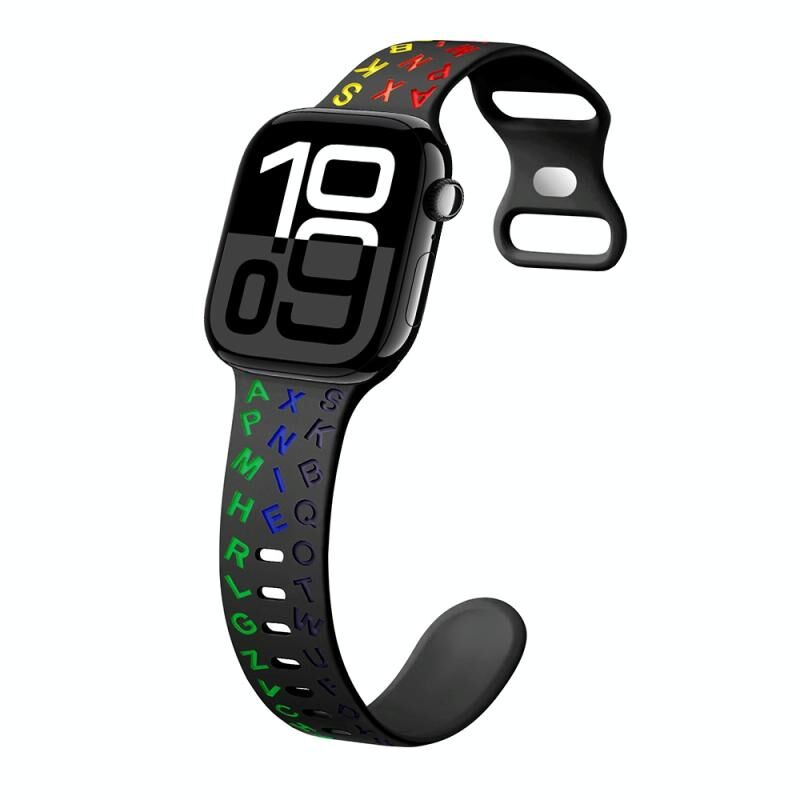 Για Apple Watch Series 10 42mm Λουράκι Σιλικόνης με Αγκράφα Πεταλούδας σε Αγγλικά Γράμματα (Λευκό Μαύρο)