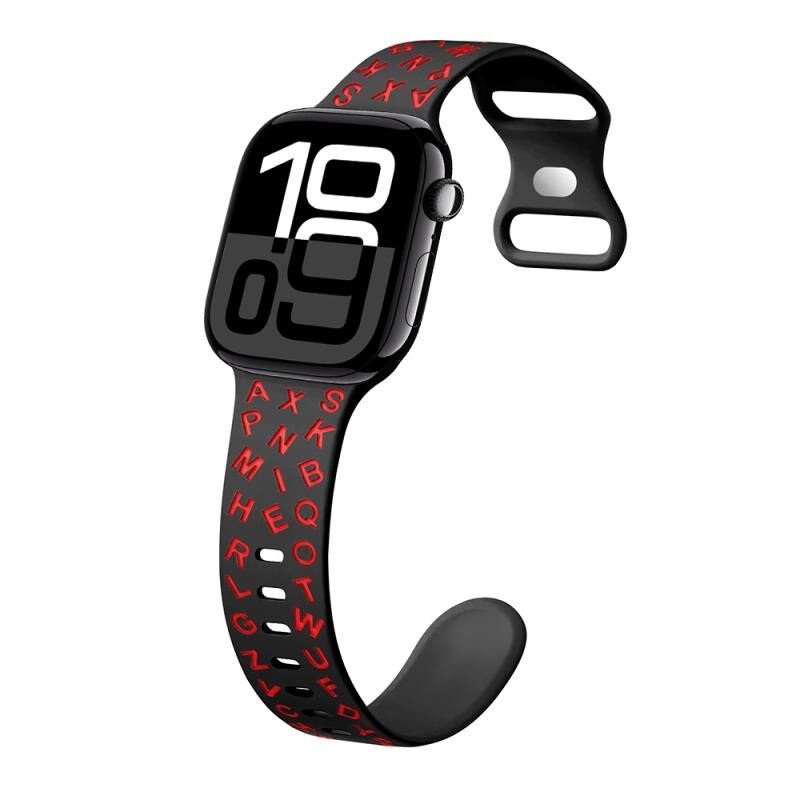 Για Apple Watch Series 10 42mm Λουράκι Σιλικόνης με Αγκράφα Πεταλούδας σε Αγγλικά Γράμματα (Λευκό Μαύρο)