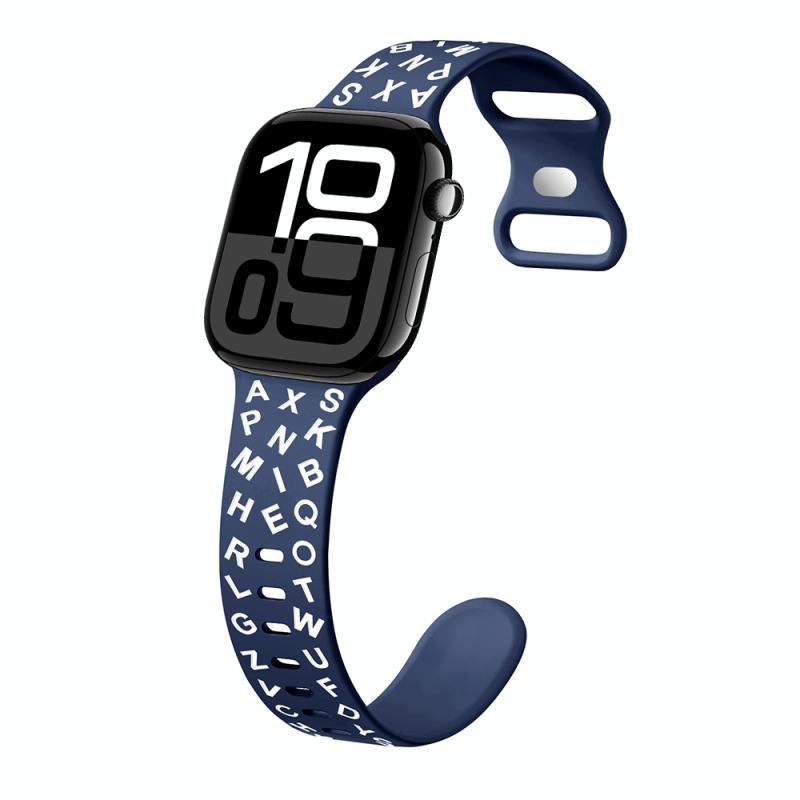 Για Apple Watch Series 10 42mm Λουράκι Σιλικόνης με Αγκράφα Πεταλούδας σε Αγγλικά Γράμματα (Λευκό Μαύρο)