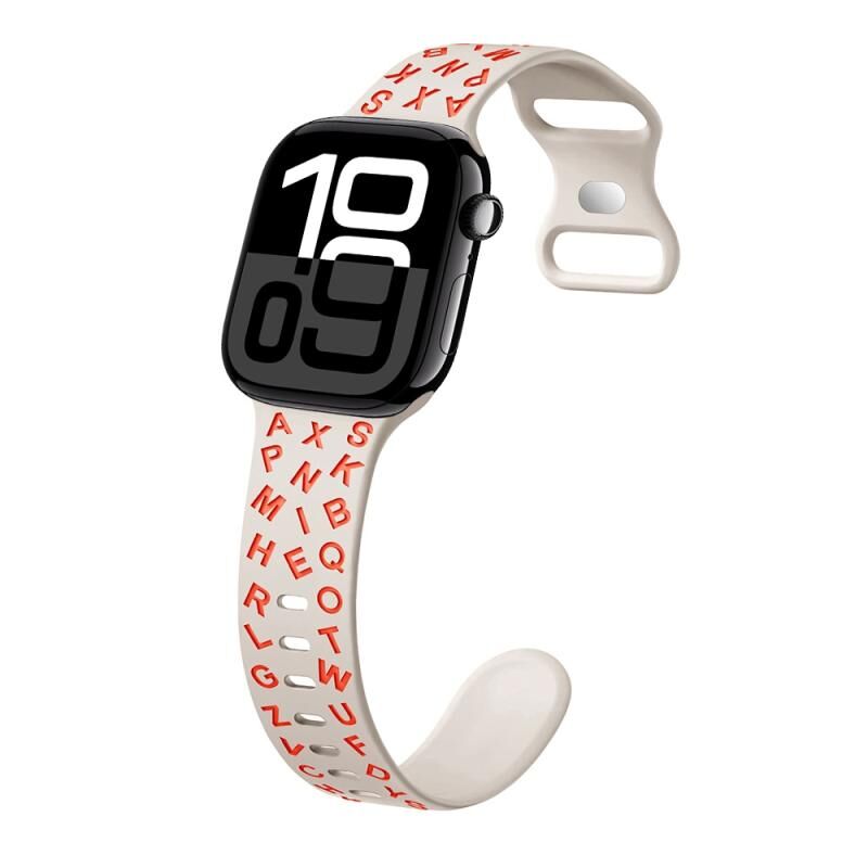 For Apple Watch Series 10 42mm English Letters Style Butterfly Buckle Silicone Watch Band(Starlight Orange)