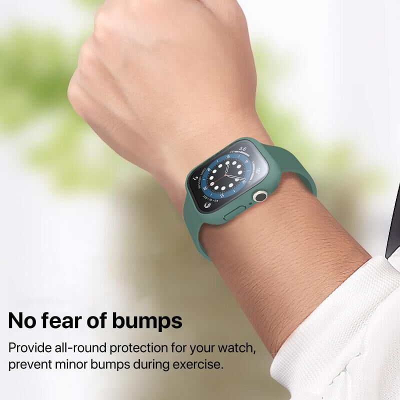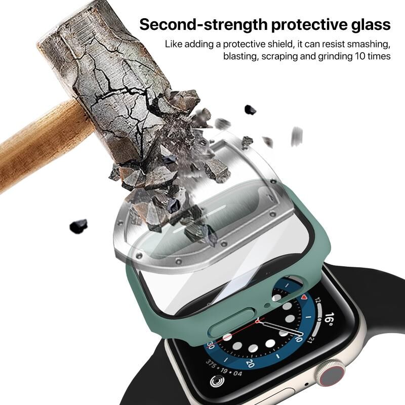 For Apple Watch Series 10 42mm PC Integrated Tempered Film Watch Case(Official Green)