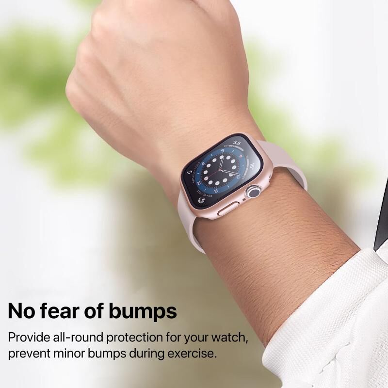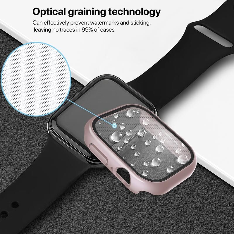 For Apple Watch Series 10 42mm PC Integrated Tempered Film Watch Case(Rose Pink)