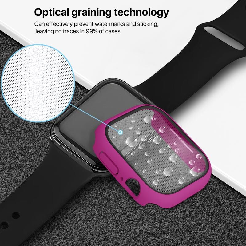 For Apple Watch Series 10 42mm PC Integrated Tempered Film Watch Case(Rose Red)