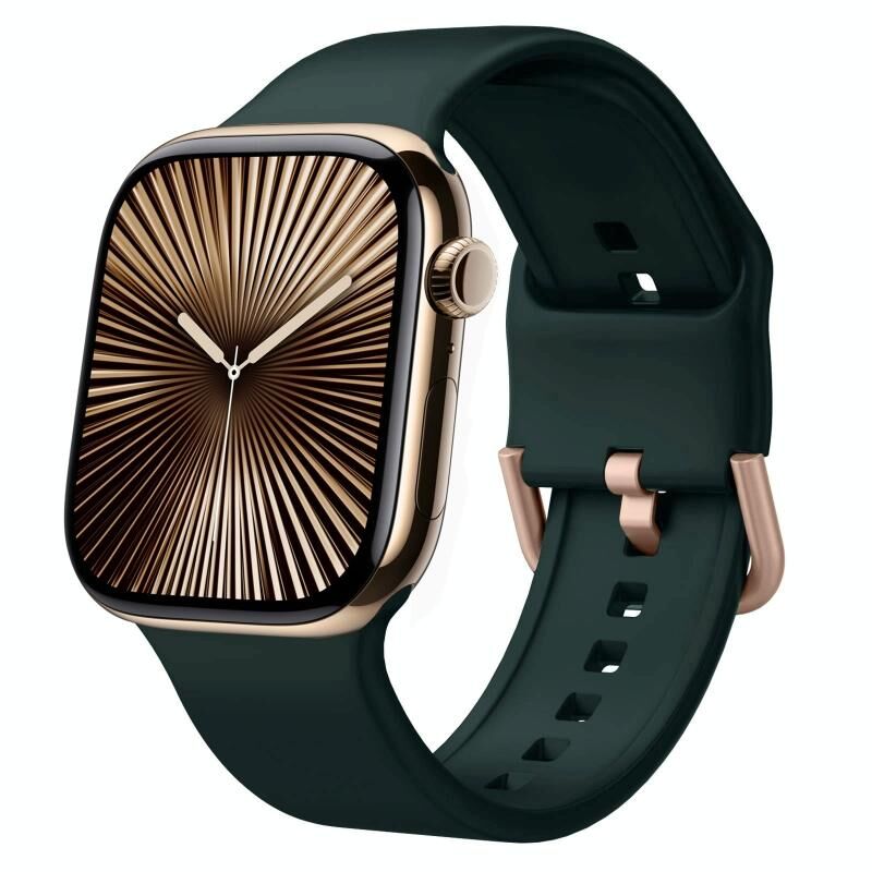 Για Apple Watch Series 10 42mm Λουρί Σιλικόνης με Αγκράφα Πείρου (Σκούρο πράσινο)