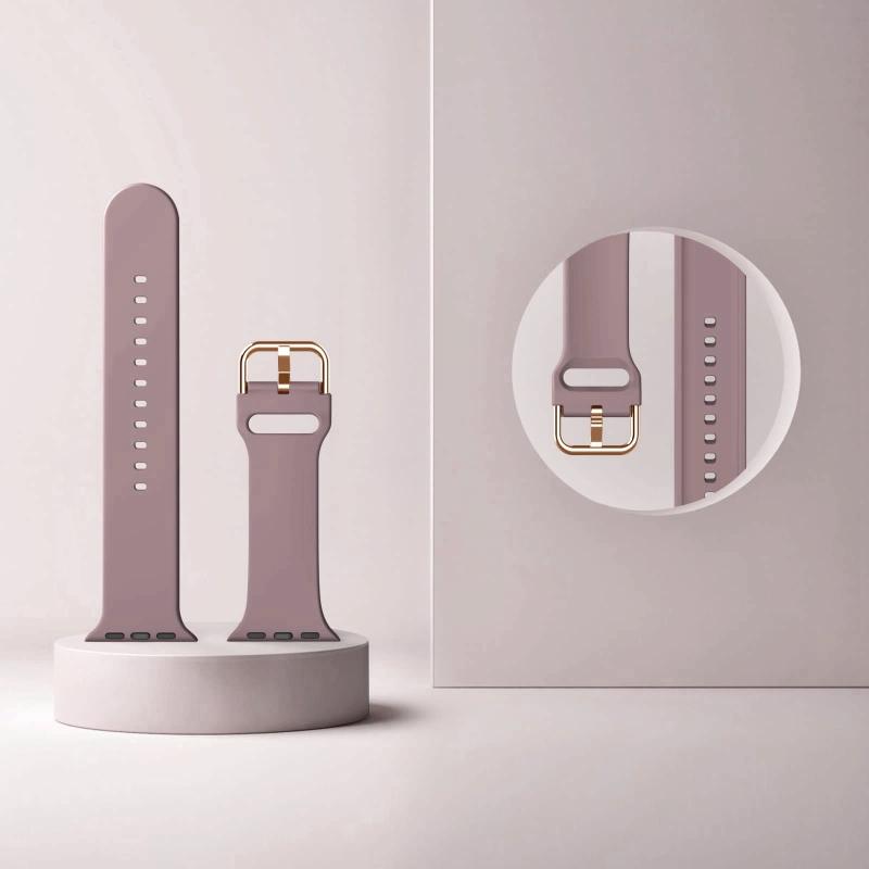 Για Apple Watch Series 10 42mm Λουρί Σιλικόνης με Αγκράφα Πείρου (Μωβ καπνιστό)