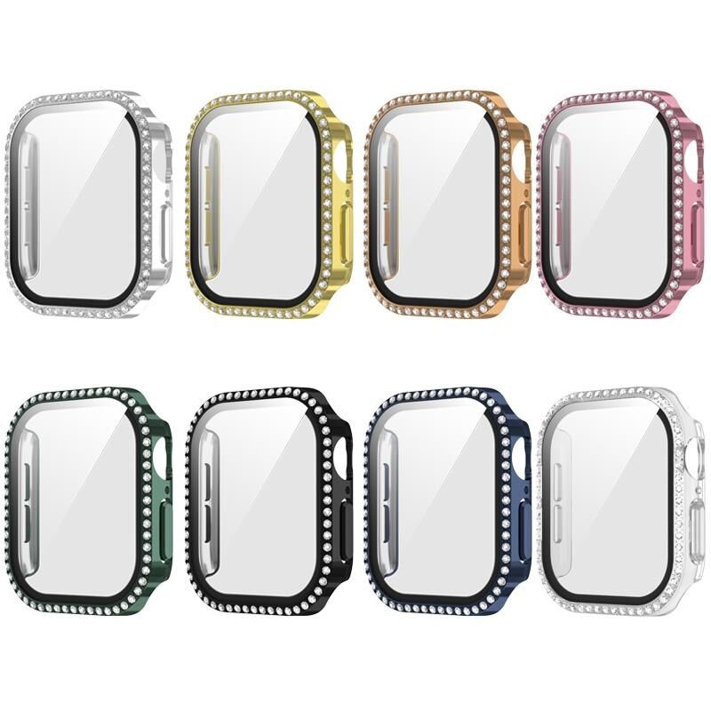 Για Apple Watch Series 10 42mm Επίστρωση Διαμαντιού Υβριδική Θήκη Ρολογιού από PC και Ελαστικό Τζάμι (Χρυσό Ρόδινο)