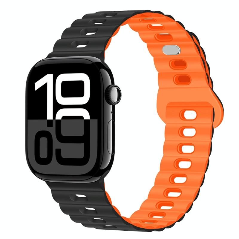 Για Apple Watch Series 10 42mm Λουρί Σιλικόνης με Αναστρέψιμη Αγκράφα και Δυνατότητα Αναπνοής (Μαύρο Πορτοκαλί)