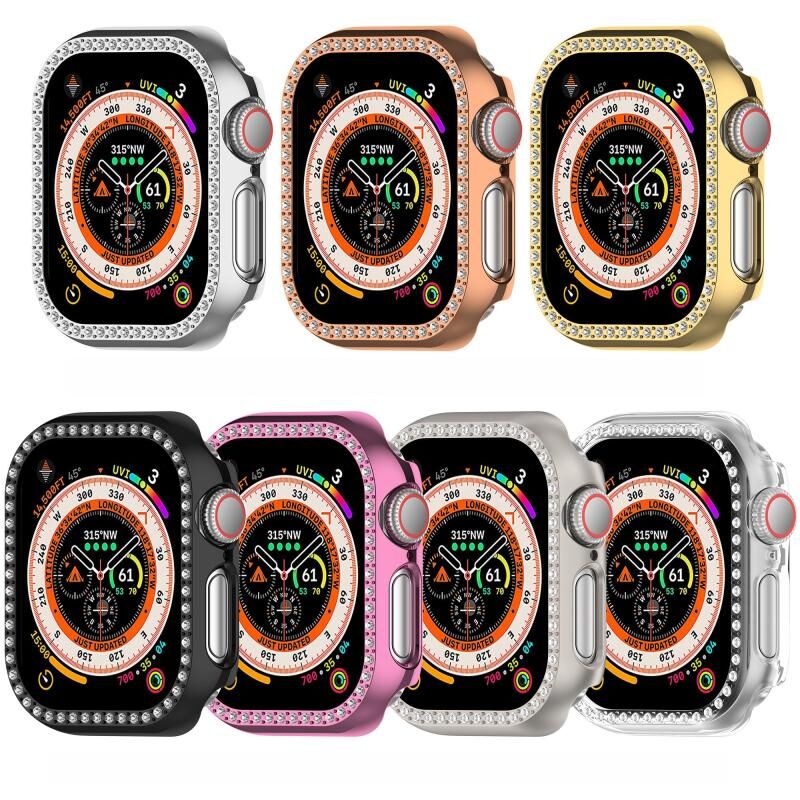 For Apple Watch Series 10 42mm Single-Row Diamond Plated PC Hollow Watch Case(Gold)