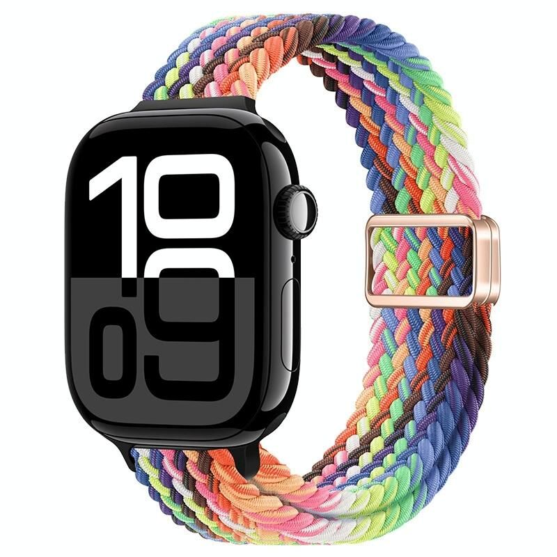 Για Apple Watch Series 10 42mm Λεπτή Μαγνητική Αγκράφα Νάιλον Πλεκτή Ζώνη Ρολογιού (Λαμπερό Νέο Ουράνιο Τόξο)