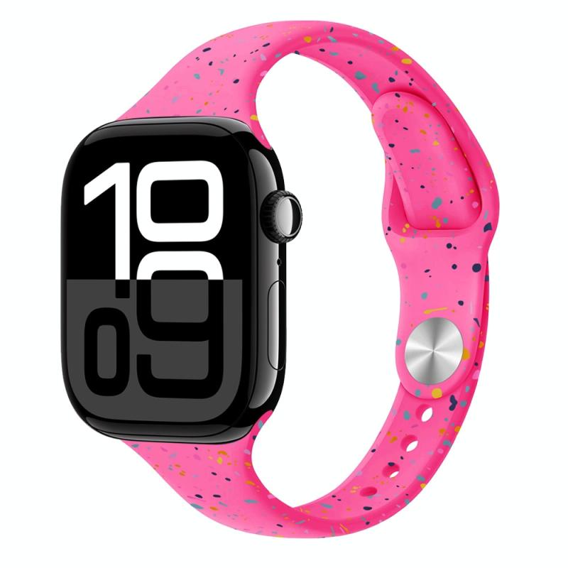 Για Apple Watch Series 10 42mm Λεπτό Στυλ Πολύχρωμες Τελείες Λουράκι Σιλικόνης (ρόζ)