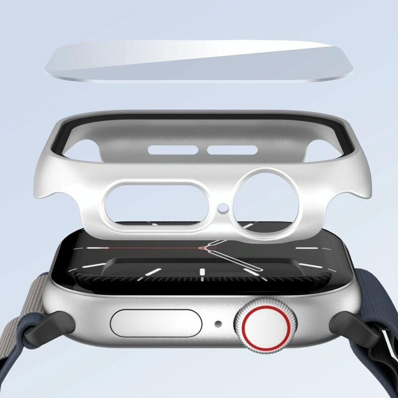 Θήκη ρολογιού για Apple Watch Series 10 42mm με ενσωματωμένη μεμβράνη tempered από PC με επίστρωση ψεκασμού (Λευκό)
