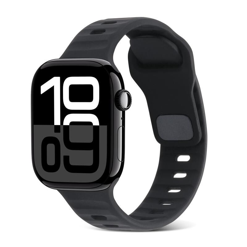For Apple Watch Series 10 42mm Square Buckle Stripes Silicone Watch Band(Black)
