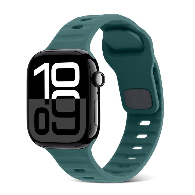 For Apple Watch Series 10 42mm Square Buckle Stripes Silicone Watch Band(Pine Green)