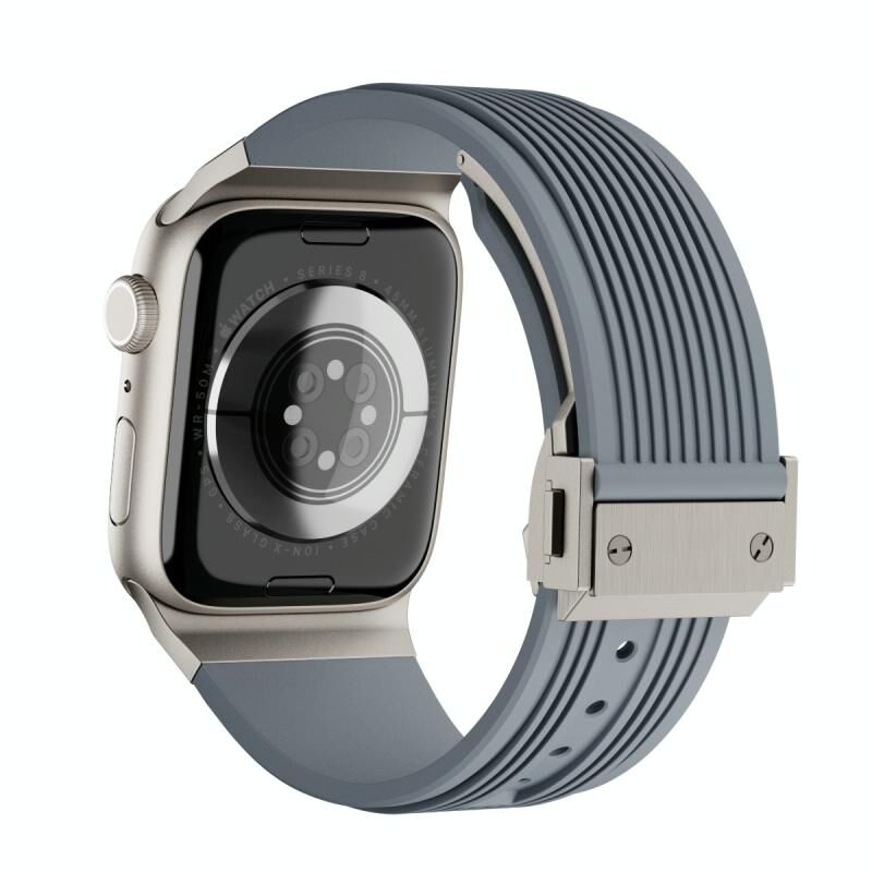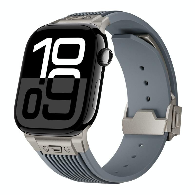 Για Apple Watch Series 10 42mm Κάθετη Υφή Τιτανίου Αγκράφα Ελαστικός Ιμάντας Σιλικόνης (Μαύρο)