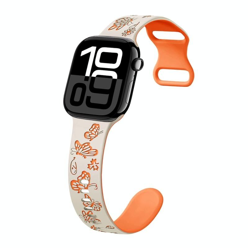 Για Apple Watch Series 10 46mm Έγχρωμο Μοτίβο Πεταλούδας Λουράκι Σιλικόνης για Ρολόι με Αγκράφα σε Σχήμα 8 (Αστρόφωτο+Πορτοκαλί)
