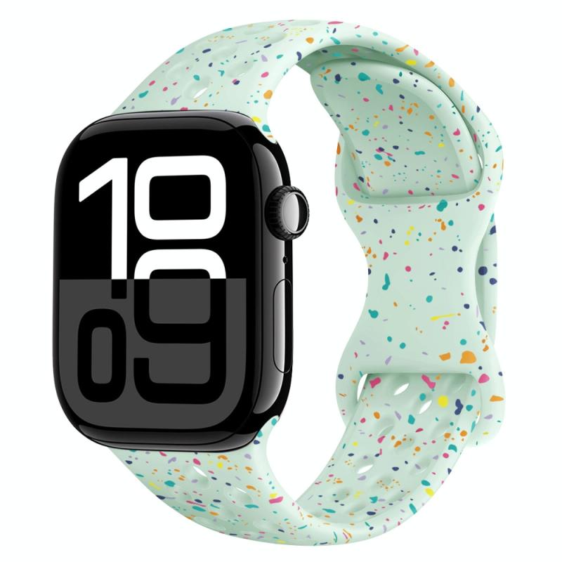 Για Apple Watch Series 10 46mm Λουράκι Σιλικόνης με Καμουφλάζ και Αγκράφα Πεταλούδας με Οπές (Ανοιχτό Μέντα)