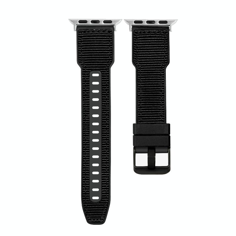 Για Apple Watch Series 10 46mm Υβριδικό Πλέγμα Νάιλον Λουράκι Σιλικόνης (Μαύρο)