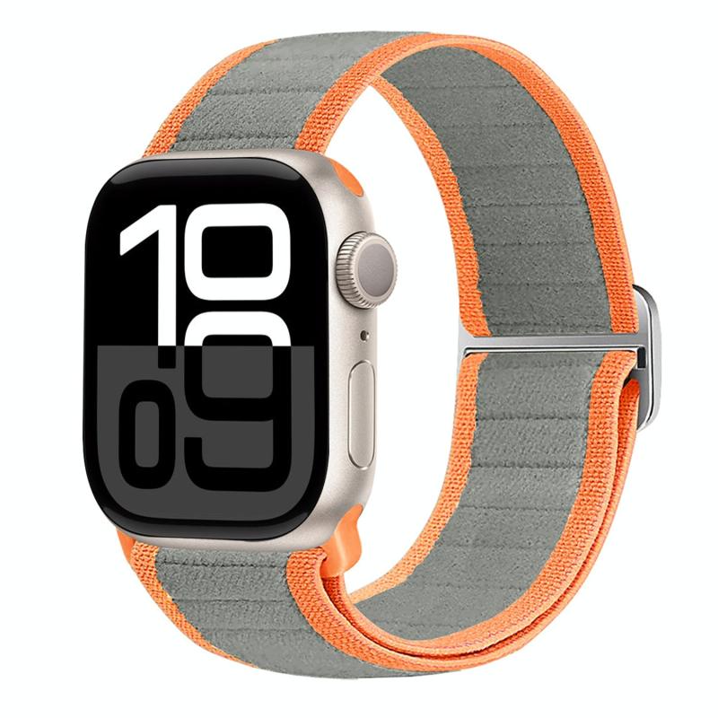 Για Apple Watch Series 10 46mm Λουρί ρολογιού από νάιλον με ελαστική αγκράφα (Μαύρο Πορτοκαλί)