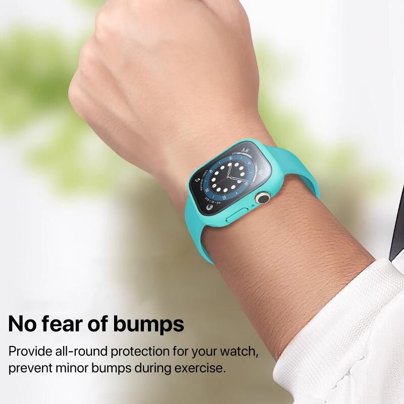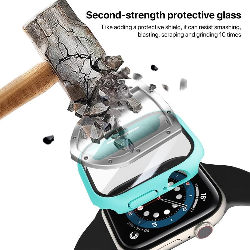For Apple Watch Series 10 46mm PC Integrated Tempered Film Watch Case(Light Blue)