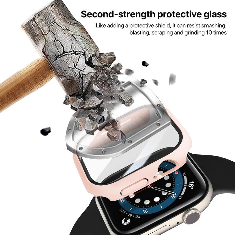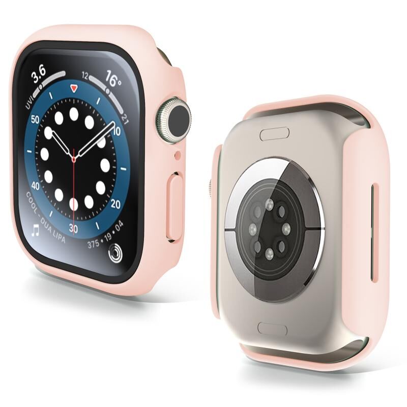 For Apple Watch Series 10 46mm PC Integrated Tempered Film Watch Case(Pink)
