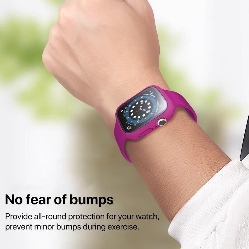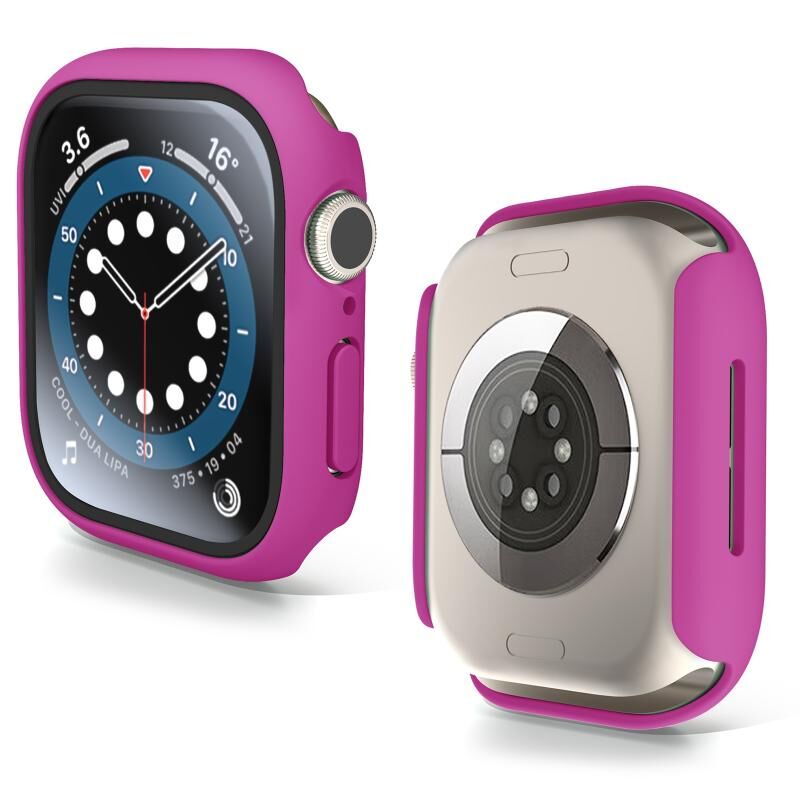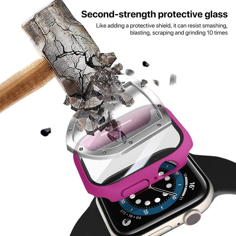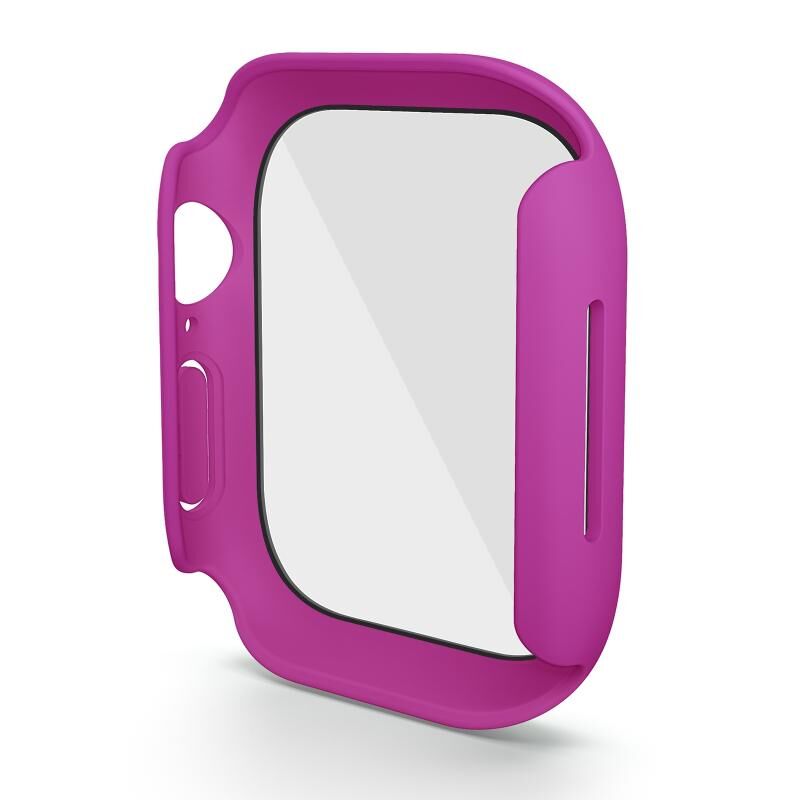 For Apple Watch Series 10 46mm PC Integrated Tempered Film Watch Case(Rose Red)
