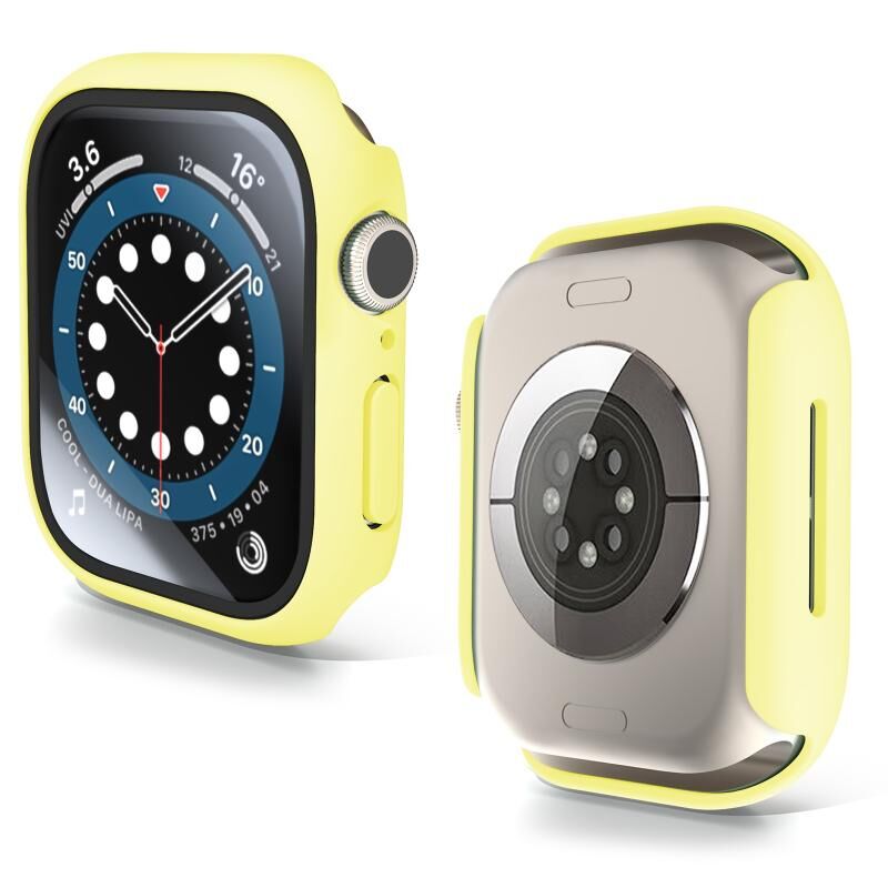 For Apple Watch Series 10 46mm PC Integrated Tempered Film Watch Case(Yellow)