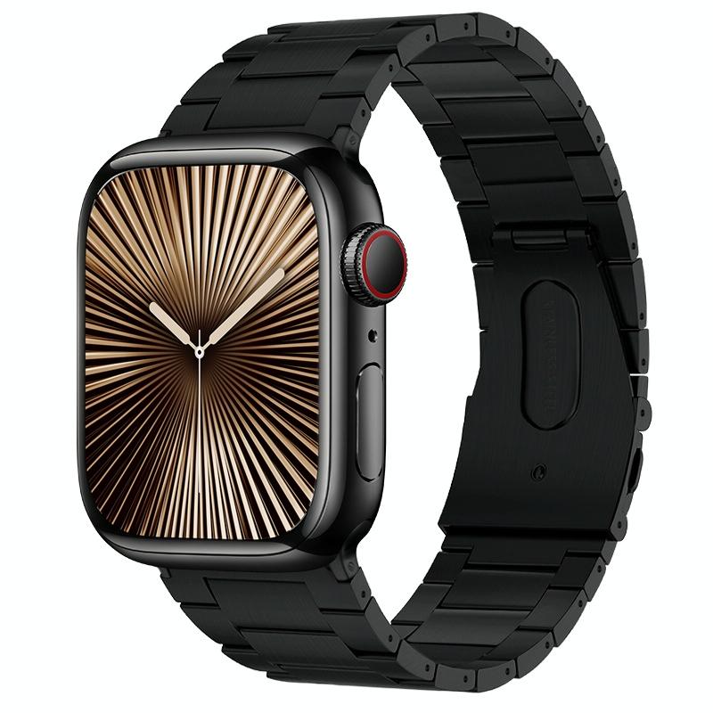 Για Apple Watch Series 10 46mm PG63 Τιτανίου Μεταλλικό Μπρατσλέτι Ρολογιού με Τρεις Εξοχές (Μαύρο)
