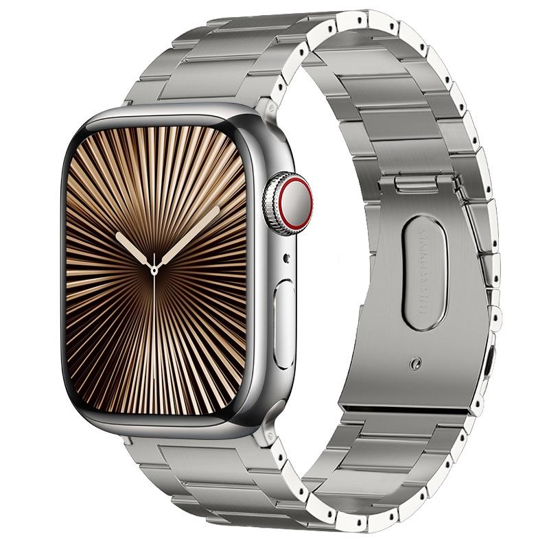 Για Apple Watch Series 10 46mm PG63 Τιτανίου Μεταλλικό Μπρατσλέτι Ρολογιού με Τρεις Εξοχές (Μαύρο)