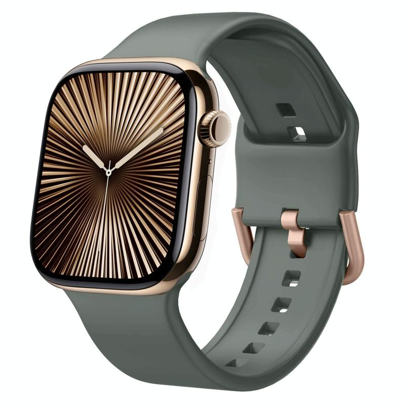 Για Apple Watch Series 10 46mm Λουρί Σιλικόνης με Αγκράφα Πείρου (Χακί)