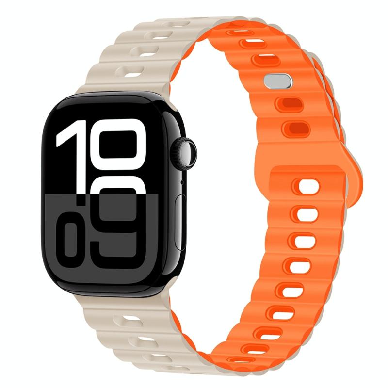 Λουρί ρολογιού Apple Watch Series 10 46mm με ανάποδη αγκράφα, αναπνεύσιμο σιλικόνης (Καφέ Σέλας)